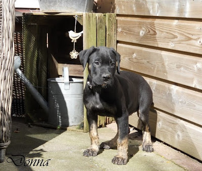 7. Fijn dat Donna en Bikkel het zo goed met elkaar kunnen vinden. Wat groeit Donna snel hè; leuk om te zien dat zo pups altijd eerst in de hoogte groeien en dan pas in de breedte, ze zien er dan altijd zo een beetje klungelig uit vind ik, superlief!