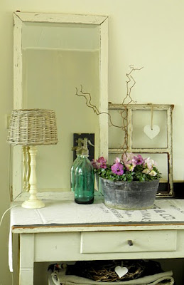14. Wat een heerlijk leuk gezellig hoekje.....eh ik heb ook een oude spiegel wil jij die misschien even ......whahahhaahh!! ....xxx....